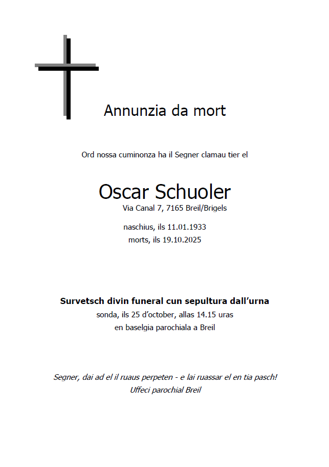 Oscar Schuoler | *11.01.1933 | +19.10.2025 |